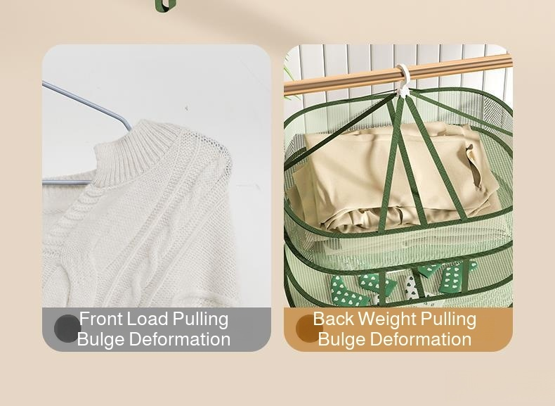 Multi-layer design for efficient drying. Suitable for socks and delicate clothes. Space-saving and foldable. Durable mesh material ensures ventilation. Easy hanging with sturdy hooks. Ideal for home use.
