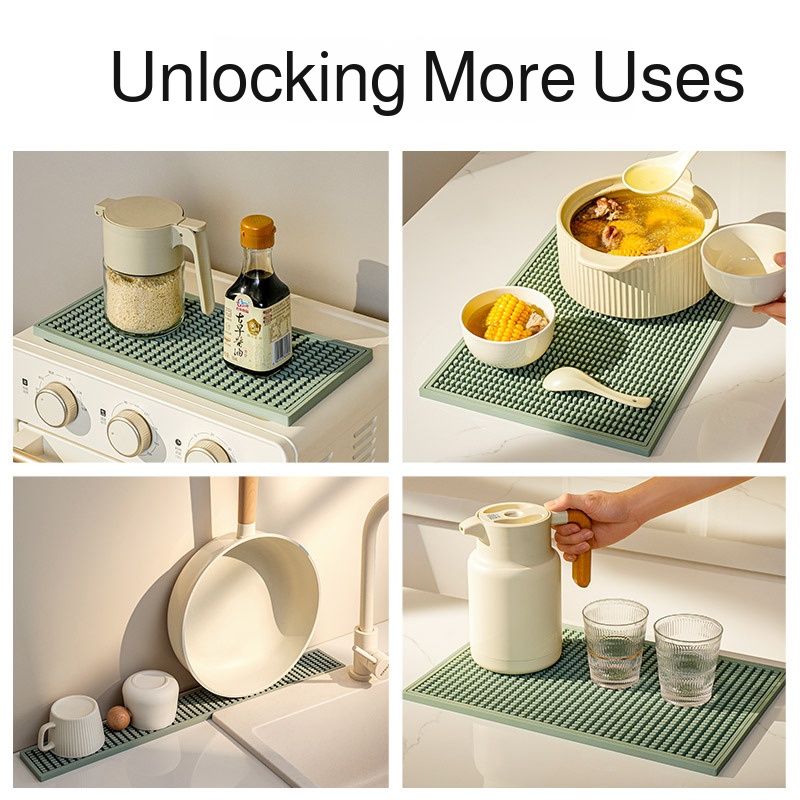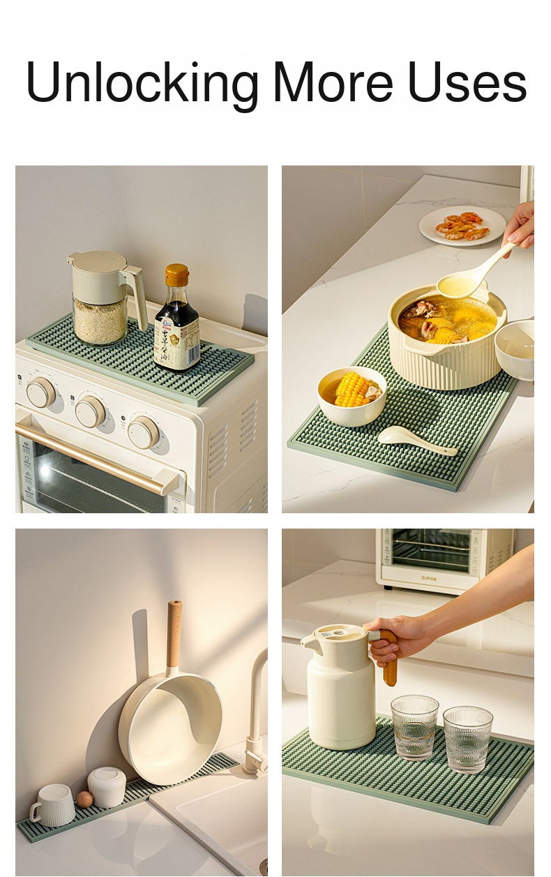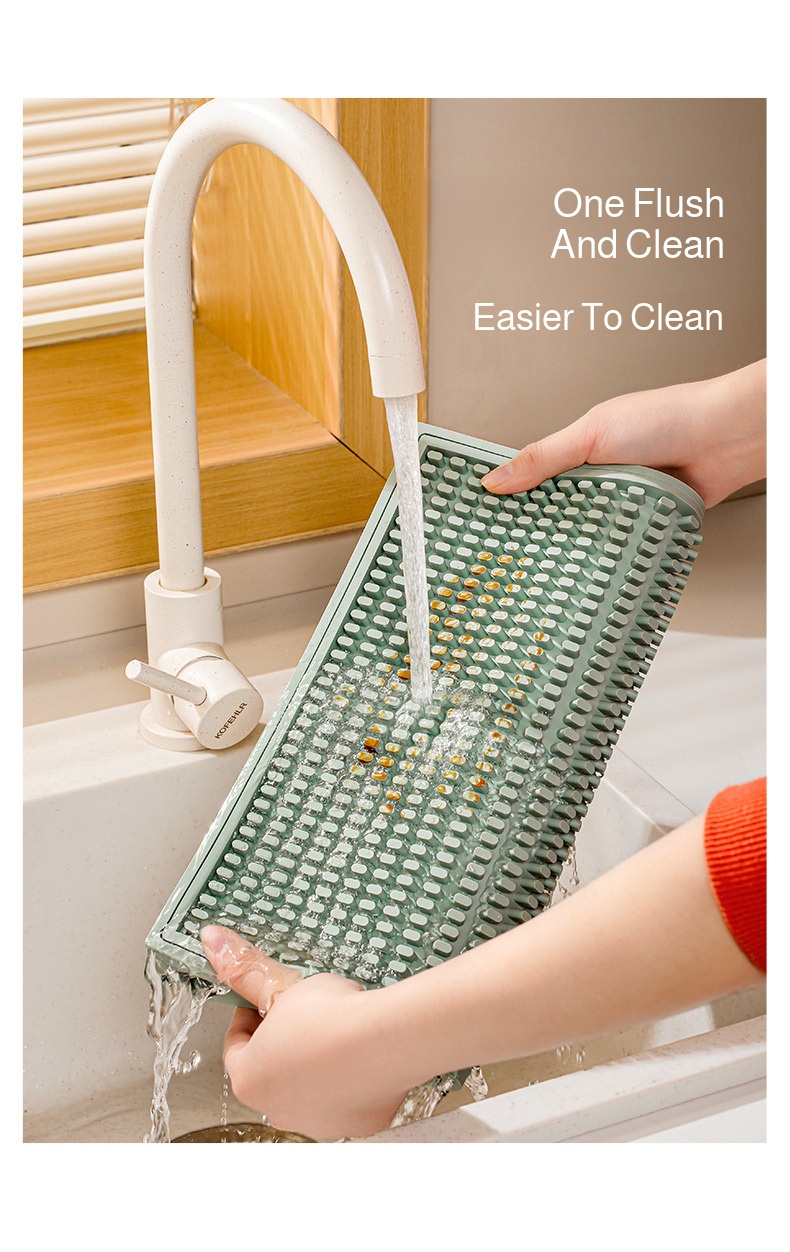 Silicone coaster with efficient draining design, fits close to the desktop, provides thermal insulation, protects surfaces, easy to clean, suitable for home use.